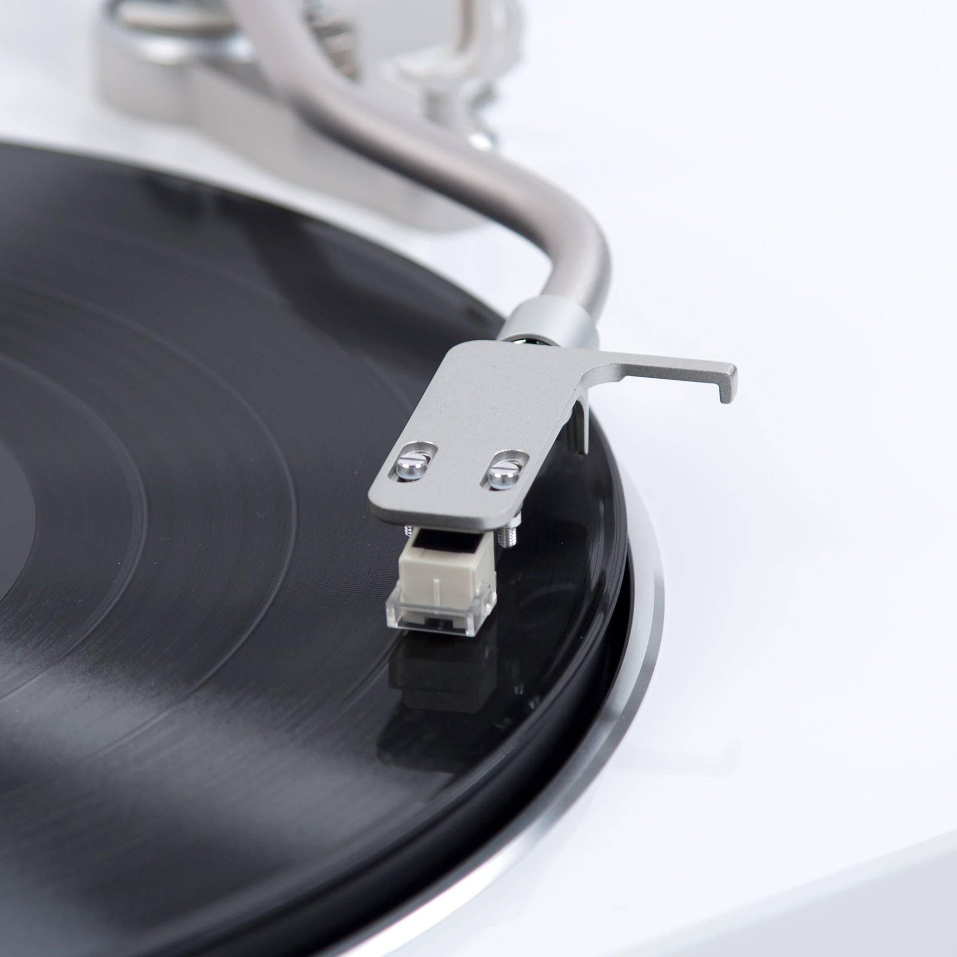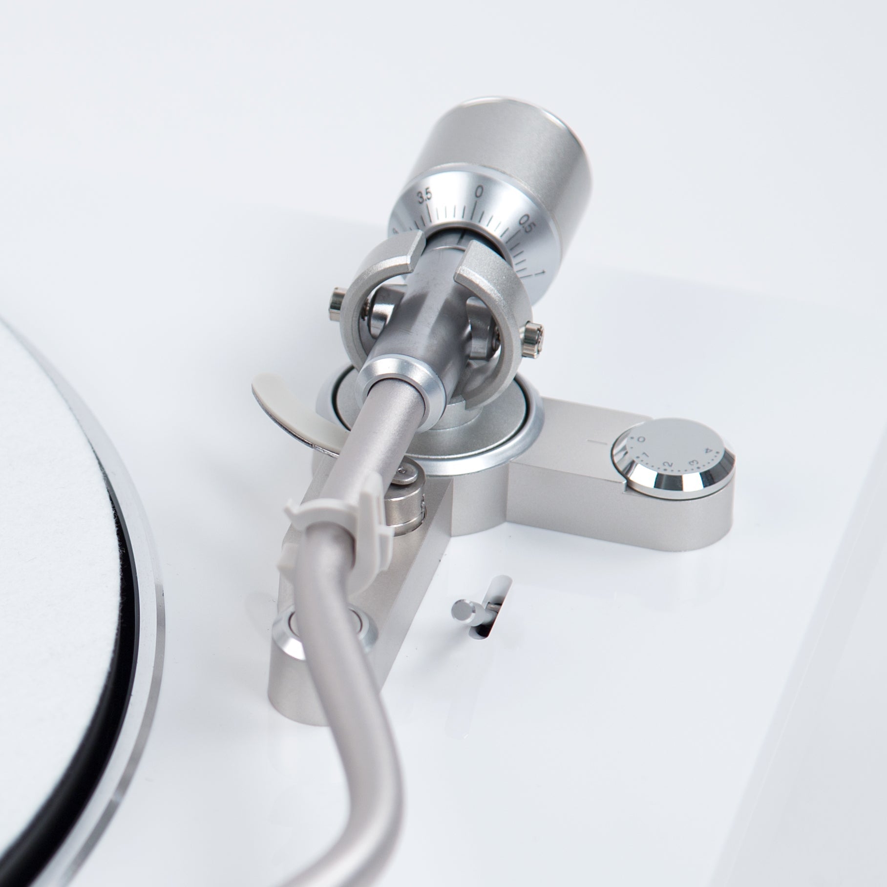 - S-shaped tonearm with pre-mounted cartridge, removable headshell, anti-skate control, tonearm lift lever