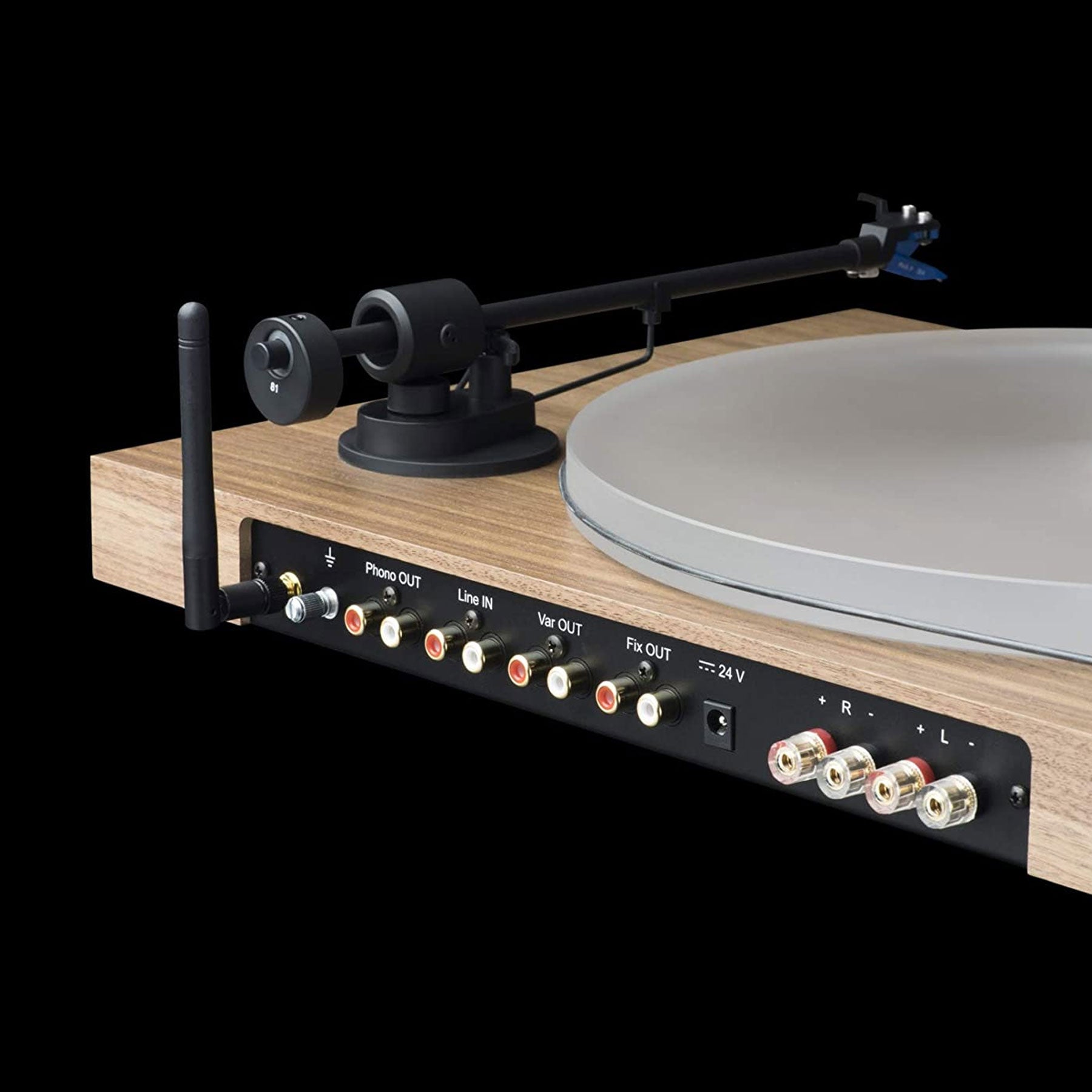- 8.6" aluminum tonearm w/ sapphire bearings