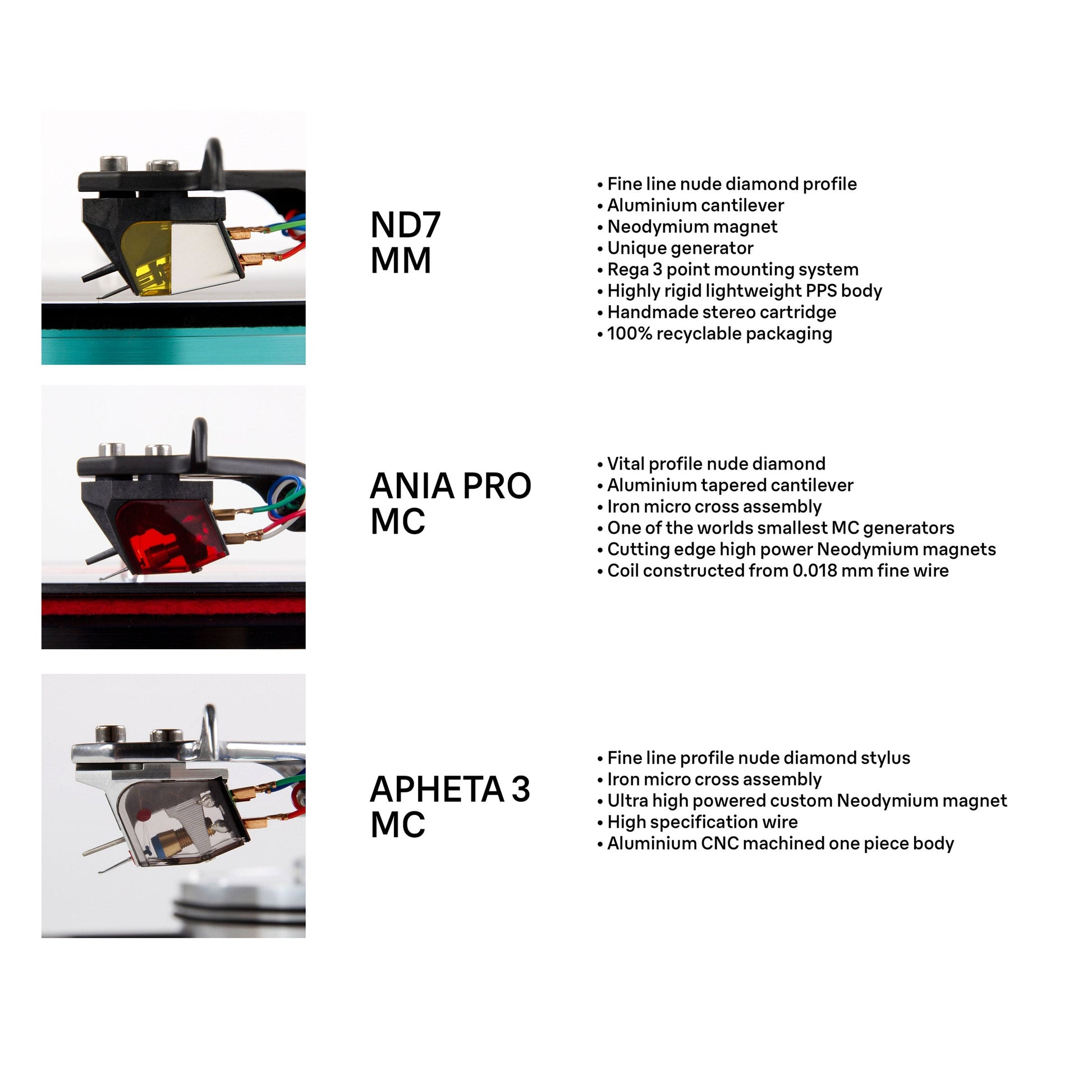 - available w/ pre-mounted Ania MC (moving coil), Apheta MC (moving coil), or without cartridge