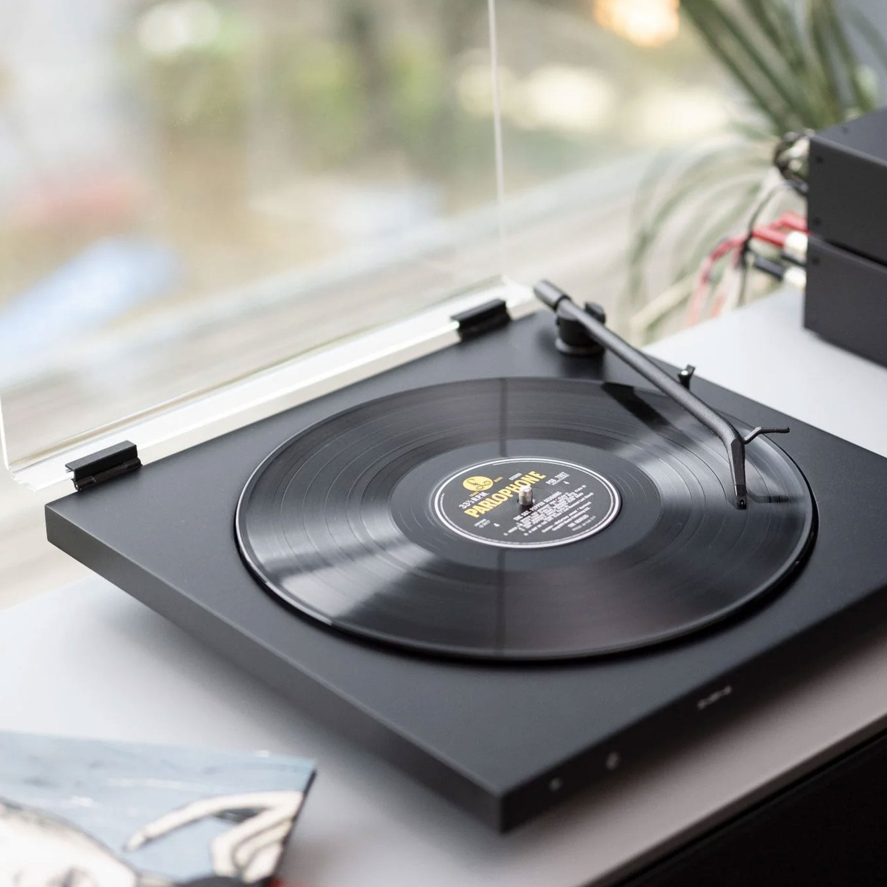 - minimalist modern turntable designed in collaboration with Pro-Ject + Ortofon w/ advanced features focused on convenience and ease-of-use